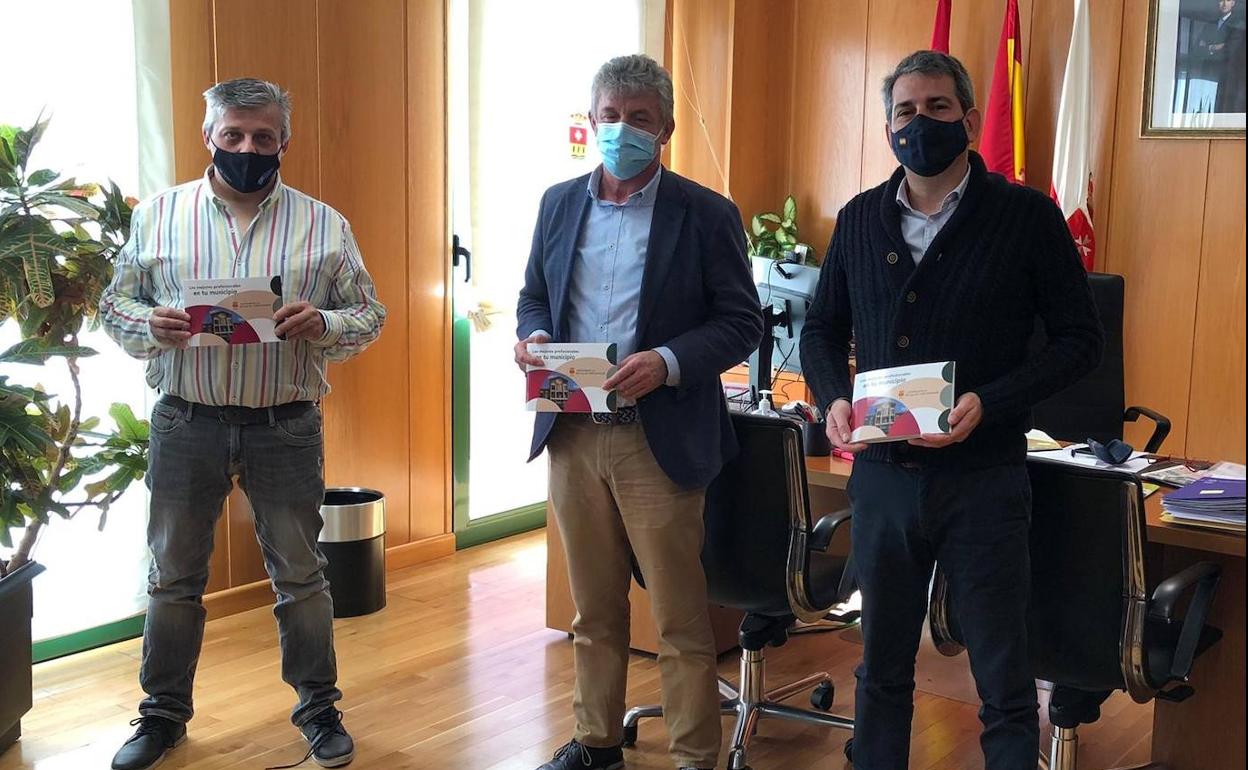 Durante la reunión, a la que han asistido Óscar Herrera, presidente de la asociación de Hostelería, y José Galeano, presidente de la asociación de Comercio, el Alcalde les ha presentado la nueva guía 'Los mejores profesionales en tu municipio'.