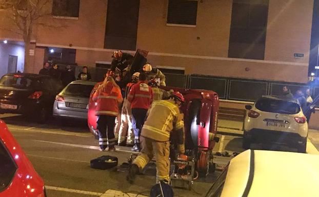 Los bomberos liberan a una mujer tras volcar con su coche en La Flecha