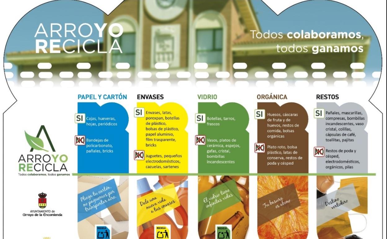La campaña «Arroyo Recicla. Todos colaboramos, todos ganamos», se desarrolla en colaboración con la Junta de Castilla y León y busca el compromiso de los arroyanos en la mejora de la gestión de los residuos domiciliarios y aumentar los índices de separación y reciclado de residuos en el municipio.