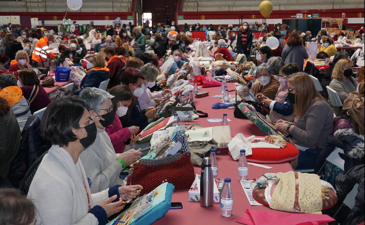 Se llenó el aforo completo permitido para esta ocasión, el medio millar de participantes. Sin las restricciones se hubieran concentrado cerca de un millar de personas en torno a su afición por los hilos, los encajes, los bolillos y las vainicas. En el recuerdo de todos los participantes estuvieron ayer todas las personas que eran asiduas a este tipo de encuentros y que, por desgracia, ya no se encuentran entre nosotros.