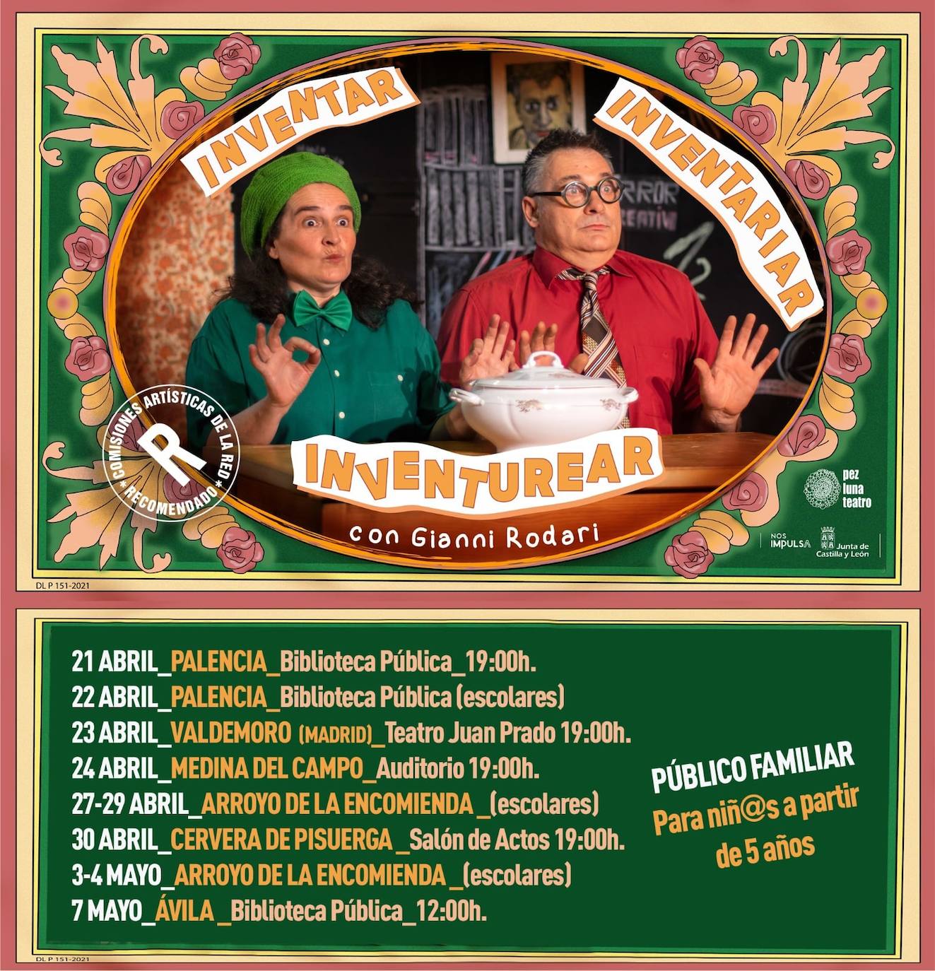 La compañía palentina Pez Luna Teatro, llevará a las tablas el espectáculo «Inventar, Inventariar, Inventurear». Se trata de una propuesta que requiere de gran cercanía con los espectadores, que serán los niños de 1º a 4º de primaria del municipio. La protagonista es una alumna muy curiosa que asiste a una escuela donde enseña el entusiasta profesor Gramaticus. El aprendizaje para los niños consistirá en imaginar relatos mediante juegos y otras herramientas creativas, diseñadas por el pedagogo italiano Gianni Rodari.