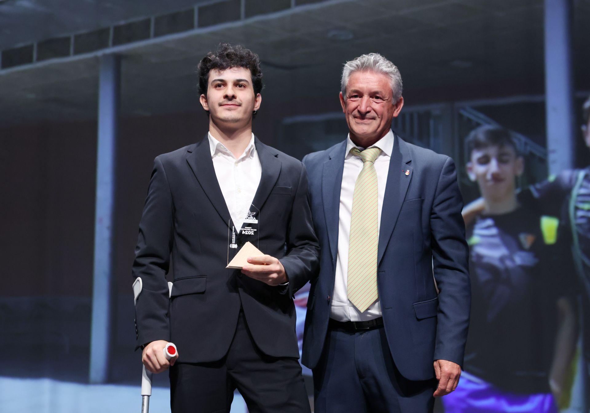 Su entrenador, Andrés Calvo Muñoz, también recibió el reconocimiento como Mejor Entrenador del Año por su dedicación de más de 35 años a la formación de jugadores, cuatro de ellos en La Flecha y por ser parte esencial del crecimiento del club. «Llevo toda la vida entrenando. Algunos de los que entrené siendo niños, hoy me traen a sus hijos», dijo satisfecho. En la categoría de entrenadores también fueron finalistas Alberto Esguevillas, director de la Escuela de Tenis Vega Sport, con una larga trayectoria como formador de jóvenes campeones autonómicos y nacionales, y Héctor Román Rodríguez, entrenador del CD Karate Arroyo. Cinturón Negro Tercer Dan y quien lleva 15 años como técnico logrando muchos podios a nivel provincial, regional y nacional.