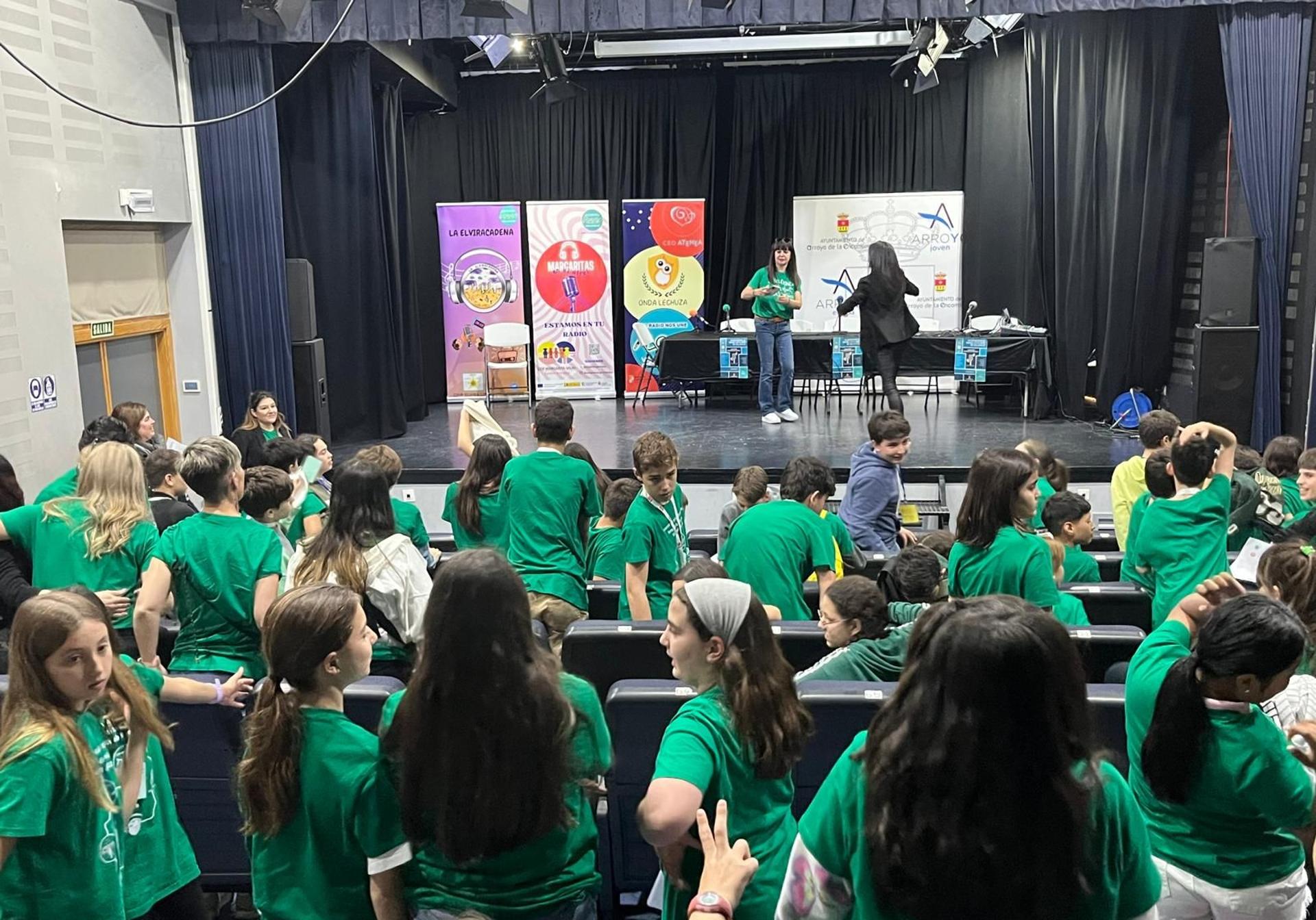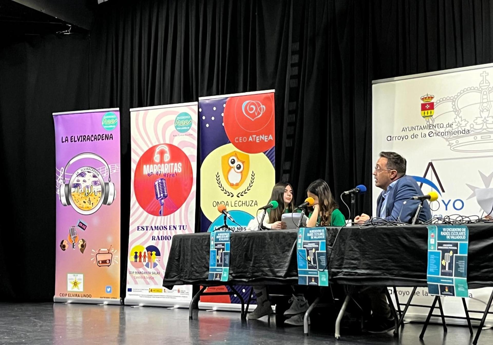 Este jueves, el Multiusos de la Vega se llenó de voces infantiles, de mucho entusiasmo y gran creatividad durante un encuentro muy especial entre las radios escolares La Elvira Cadena (del CEIP Elvira Lindo), Margaritas en el Aire (del CEIP Margarita Salas) y Onda Lechuza (del CEO Atenea). Estas tres emisoras educativas unieron fuerzas para vivir una jornada repleta de actividades y experiencias compartidas en el marco del VII Encuentro de Radios Escolares de Valladolid organizado por la Red de Radios Escolares de Valladolid, una cita que este año se expande bajo el formato de Encuentro Intercentros Provincial y que cuenta con el apoyo del Ayuntamiento de Arroyo.
