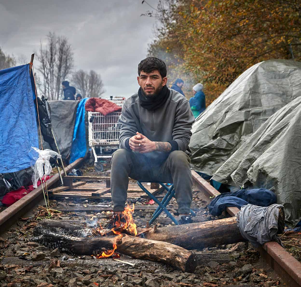 En el campo de refugiados que se levanta cerca de Dunkerque, al noroeste de Francia, las bandas de remolcadores organizan viajes ilegales en botes inflables que, en muchas ocasiones, no son aptos para navegar. Tan solo unas horas antes de la escena en la que Ian Molani espera sentado sobre las vías del tren a que una de esas bandas le consiga una plaza para cruzar el canal de la Mancha, 29 personas volcaron en una embarcación frente a la costa, incluidos tres niños. Solo dos de los adultos sobrevivieron.