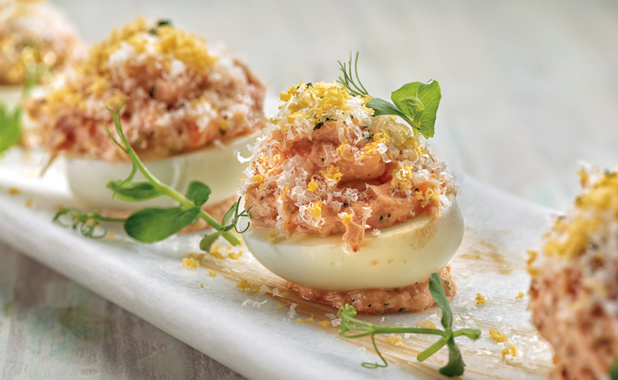 Huevos con bonito y salmón