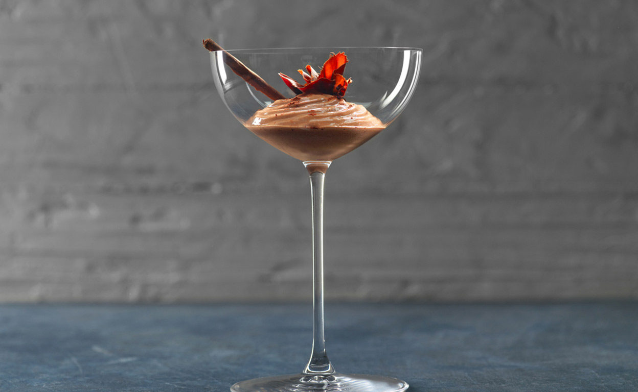 Podemos servir nuestra mousse de chocolate espolvoreándola con cacao amargo y unos cristales de sal, con un buen helado cítrico o con el contraste de frutas rojas ácidas, como frambuesas, casis o grosellas.