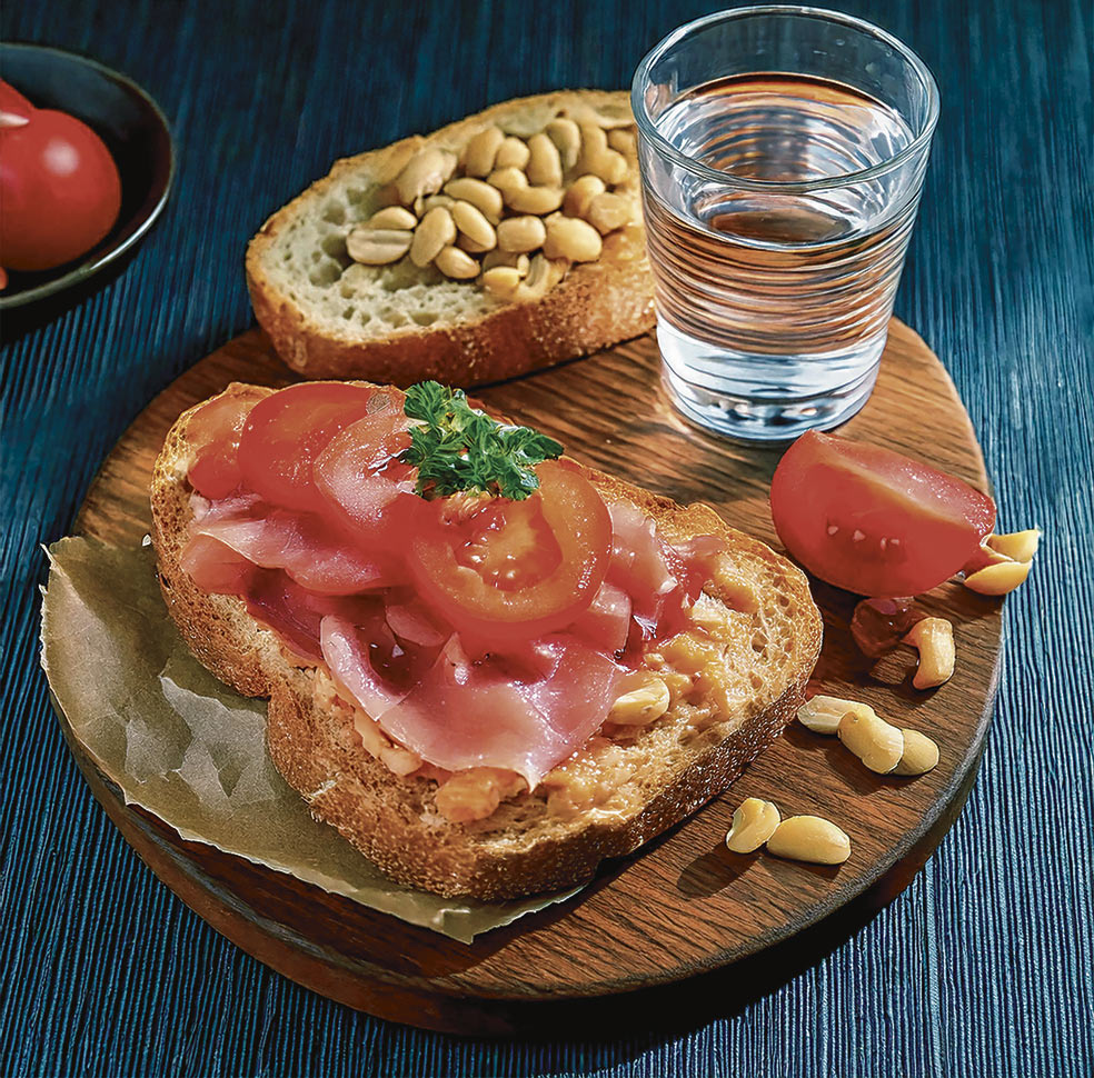 «Tomo una rebanada de pan con tomate y algo de proteína encima: jamón serrano o jamón de York… Un puñado de frutos secos y un vaso de agua».