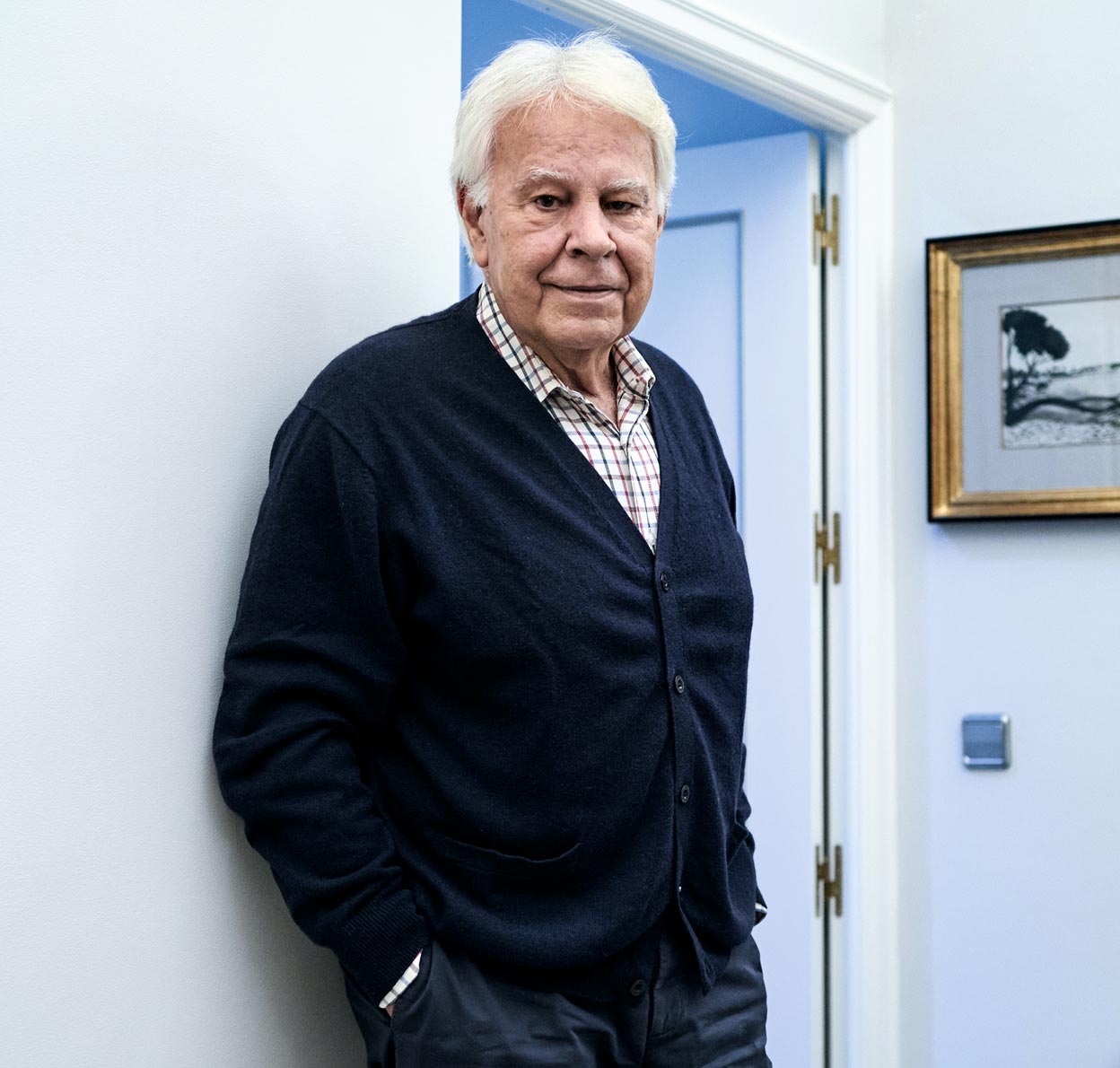 El día en que tiene lugar la entrevista se cumplen 39 años de la victoria de Felipe González (Sevilla, 1942) en las elecciones del 28 de octubre de 1982. Es lo primero que comenta al sentarse para ser entrevistado. Su figura, cuatro décadas más tarde, no ha perdido el 'visionario liderazgo' que lo llevó a la Moncloa y su voz despierta un impensable consenso de una amplia mayoría de la ciudadanía. A punto de cumplir 80 años, nos recibe en su casa, un piso elegante en el barrio de Salamanca. Su mujer, Mar García Vaquero, está siempre cerca. Felipe González responde a las preguntas serio, en un sofá del zaguán.